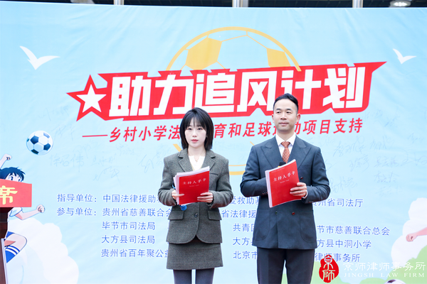 2025年12月15日,中国法律援助和司法行政英烈关爱救助基金会京师法治公益专项基金资助项目“助力追风计划—乡村小学法治教育和足球运动项目”活动在贵州省毕节市大方县元宝小学正式启动,一场融合法治教育与体育运动的成长护航行动随即展开,普法讲师分别为元宝小学、中洞小学的学生开展普法教育课程。