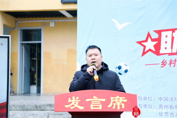 在开场致辞环节,大方县教育局局长李玉松代表县教育局对各位嘉宾的到来表示热烈欢迎与衷心感谢。他指出,“助力追风计划”是一项极具远见和温度的公益项目,创造性地将法治教育与足球运动相结合,与当前提升学生综合素质、加强校园安全及体教融合等工作高度契合。同时,他表达了对项目未来发展的深切期望,希望该计划能够持续深化、拓展覆盖面,将法治教育与体育融合的创新模式推广至更多学校,惠及更广大青少年群体,使其成为助推全县素质教育、平安校园建设的示范性公益品牌。