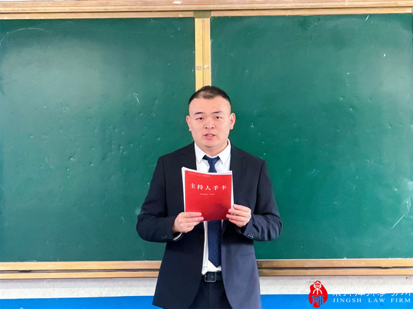 随后,现场举行了庄重而温馨的公益讲师亮相及绶带佩戴仪式。陈体贵、黄名杨、肖创、赵利芳、胡勇军、杨梓菡、赵美、曹越、王刚、莫仲秋十位讲师依次上台佩戴绶带。他们将在本次活动中承担着公益普法的任务,标志着法治公益星火正式传递。