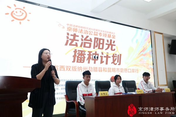 本次京师法治公益项目“法治阳光播种计划”云南西双版纳州勐腊县和昆明市磨憨口岸行,立足云南作为“一带一路”面向南亚东南亚辐射中心的区位优势以及中国老挝磨憨-磨丁经济合作特区的开放机遇,以“法治浸润+多元实践”为路径,通过构建沉浸式普法矩阵,在西南边陲成功打造了立体生动的法治教育场域。活动以专业赋能激活边疆校园法治教育内生动力,以文化浸润滋养青少年法治信仰,让法治意识在云岭边疆生根发芽、抽穗扬花。未来,京师律所将持续发挥京师法治公益专项基金的支持优势,深化“公益律师+边疆学校”协同机制,推动优质普法资源沿“一带一路”合作通道向更广边疆地区辐射延伸,以法治清泉润泽热土,以法治根基固边安民,为培育具备国际视野与法治精神的新时代建设者注入不竭动力,护航边疆少年在开放包容、睦邻合作的时代阳光下茁壮成长。