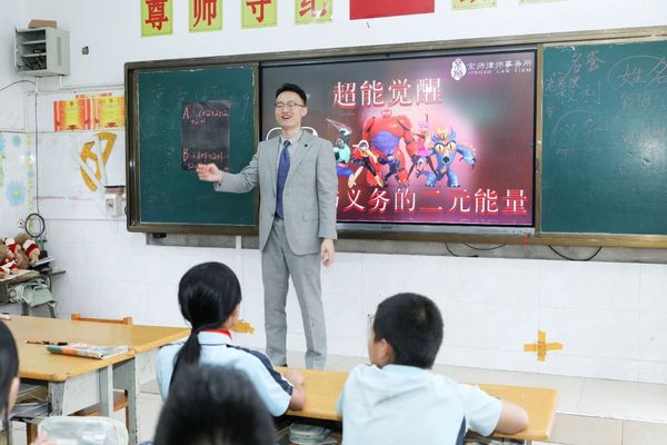 李齐、王经纬、董起源、崔利民四位讲师分别将《法律超能战队——集结法律超能力》普法课程带到了磨憨完小、勐腊镇曼龙代小学、曼庄小学、勐腊镇龙林小学、磨憨中心小学、勐腊镇曼掌小学的课堂当中,通过“防护盾”“隐身衣”“知识光环”等生动比喻解析《未成年人保护法》核心内容,以“权利能量块”与“义务能量块”的二元认知模型阐释法律关系中权利与义务的辩证统一,并带领学生完成从“预备队员”到“正式队员”的成长历程,通过集体宣誓深化对法治精神的认同与践行。