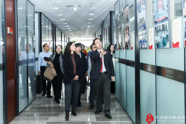 在京师律所工作人员陪同下,陈希伦总经理一行参观了律所大厅长廊、四合院、京师律禮及模拟法庭等区域。古朴雅致的四合院与现代化办公空间交融并存,独具匠心的文化衍生品彰显律所人文底蕴,高度还原的模拟法庭则体现了京师在专业化法律服务建设上的扎实投入,来访嘉宾对京师律所的整体环境、文化理念与发展布局给予了高度评价。