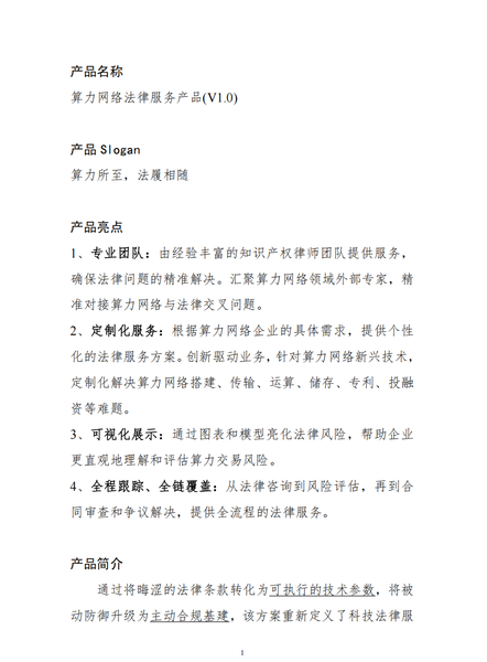 课题01 《算力网络法律服务产品(V1.0)》