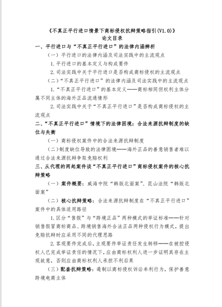 课题05 《不真正平行进口情景下商标侵权抗辩策略指引(V1.0)》