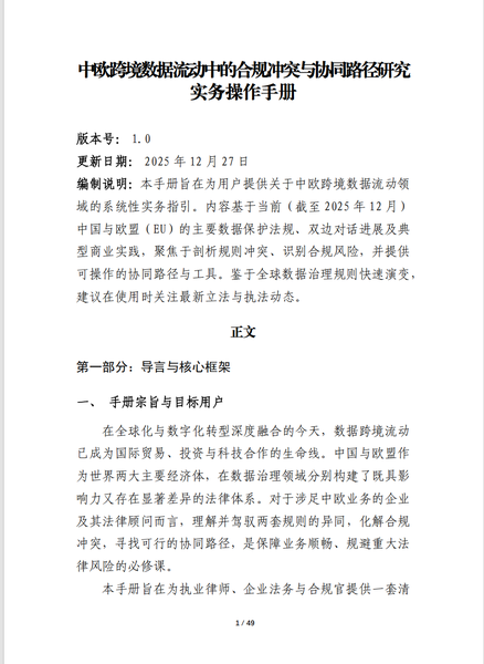 课题06 《中欧跨境数据流动合规冲突与协同路径操作指引(V1.0)》