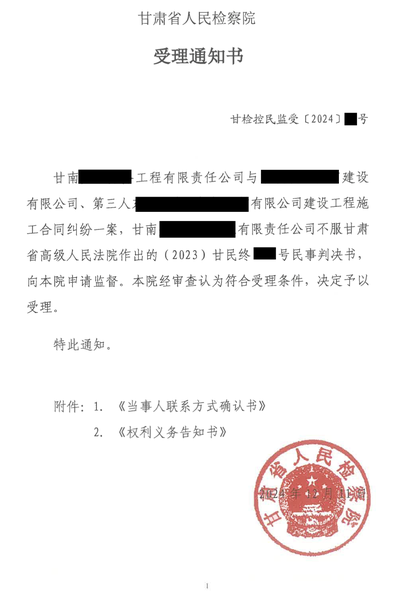 2024年12月,甘肃省检察院正式受理监督申请,2025年6月正式向甘肃省高级人民法院提出了检察建议。