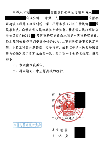 在代理一起历经十余年、最高人民法院曾经驳回的再审建设工程合同纠纷案中,京师律师事务所刘志民、赵钊律师以高度的专业责任感和系统化办案策略,成功推动案件逆转。本案的最大难题是接手此案时,该案已被最高人民法院驳回了再审申请。赵钊律师率团队成员多次奔赴兰州,与甘肃省人民检察院、甘肃省高级人民法院承办案件的司法人员深入沟通,递交经严谨组织的证据材料和再审申请法律意见,最终省检察院同意提出检察建议,后由省高院再审并改判,最大限度的维护了当事人的合法权益。本案不仅实现了个案正义,更彰显了民事检察监督在纠正重大事实认定错误中的制度价值,体现了京师律师坚信正义的决心与优良的办案作风,用工匠精神对案件精心打磨,努力做党和人民满意的好律师。