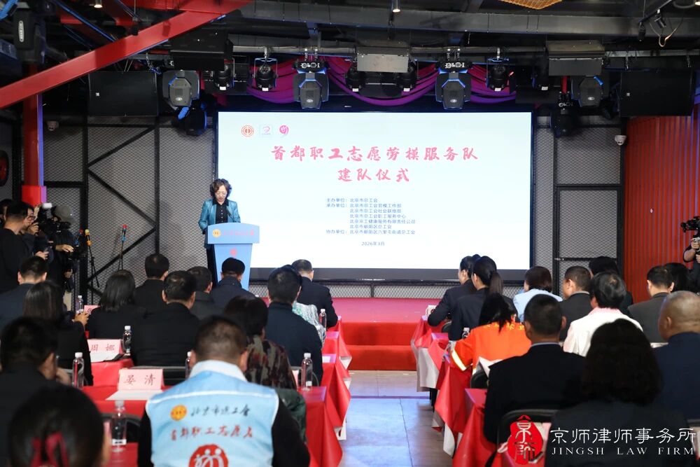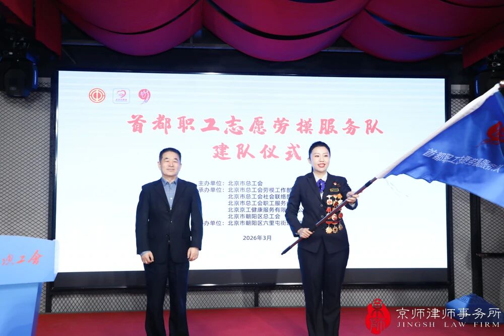 3月16日,由北京市总工会主办,北京市总工会职工服务中心、北京京工健康服务有限责任公司、朝阳区总工会联合开展的首都职工志愿劳模服务队建队仪式在朝阳区六里屯街道文化活动中心举行。北京市劳动模范、京师律所工会主席、公共法律事务部主任陈亮参加首都职工志愿劳模服务队建队仪式。