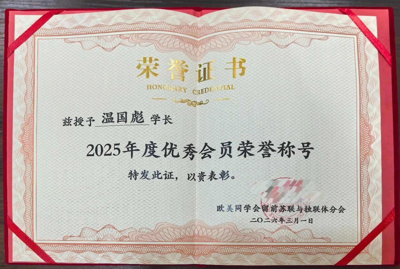 2026年3月1日,由京师律所俄罗斯远东合作办公室支持的欧美同学会留苏分会2026新年联谊会在京举办。欧美同学会副会长、留苏分会会长、教育部原副部长、中国教育国际交流协会会长刘利民,欧美同学会党组书记、秘书长李民出席并致辞。欧美同学会留苏分会理事、京师律所“一带一路”中俄法商服务中心主任温国彪受邀出席,与留苏归国学者及各界专业人士共200余人汇聚一堂,围绕中俄交流合作等议题深入交流。活动现场,温国彪律师凭借在留苏分会工作中的积极担当与在中俄法商服务领域的突出贡献,获评欧美同学会留苏分会“优秀会员”荣誉称号。