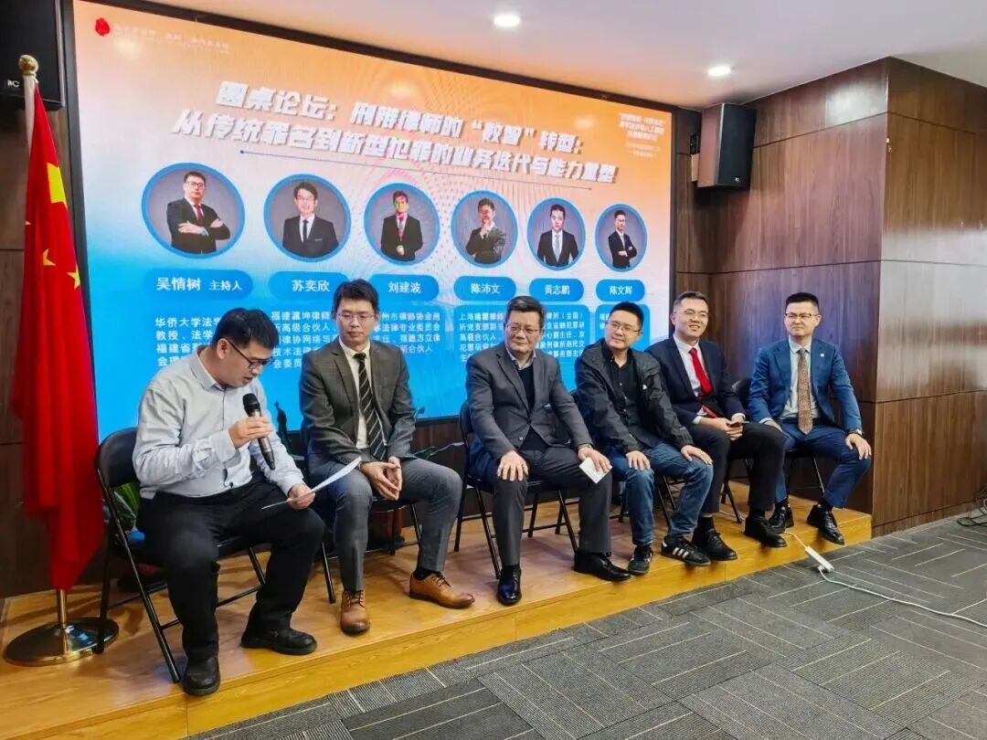 圆桌与谈环节由华侨大学法学院副教授、法学博士、福建省刑法学研究会理事吴情树担纲主持。泉州市律师协会刑事法律专业委员会主任、福建志立律师事务所合伙人刘建波,京师律所(全国)刑委会金融犯罪研究中心副主任、北京市京师(泉州)律师事务所刑民交叉法律事务部主任黄志鹏,上海靖霖律师事务所党支部副书记、高级合伙人、网络犯罪研究与辩护部主任陈沛文,福建瀛坤律师事务所高级合伙人、全国律协网络与高新技术法律专业委员会委员苏奕欣,福建信实(泉州)律师事务所律师陈文辉共同担任与谈嘉宾。