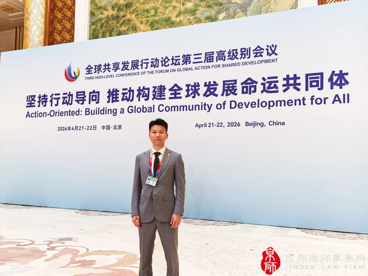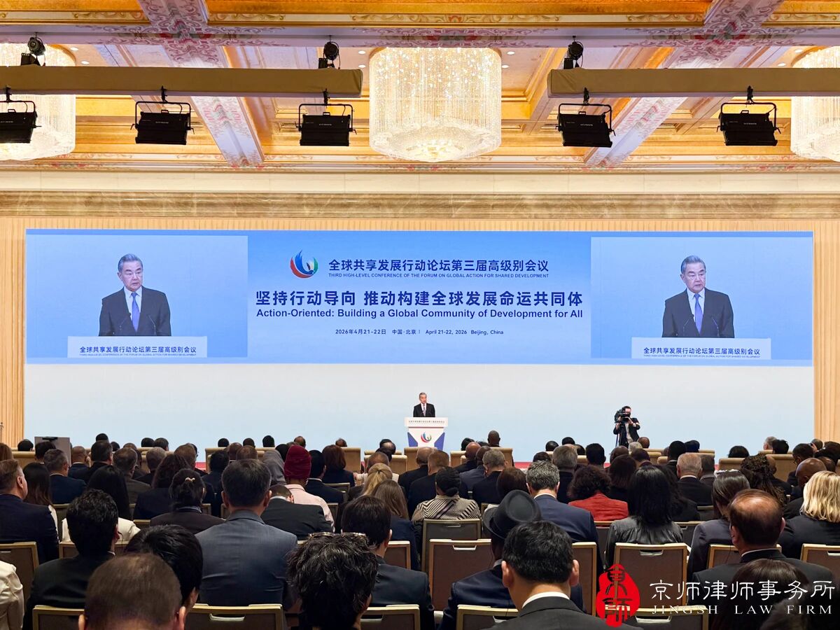 2026年4月22日,由国家国际发展合作署主办的全球共享发展行动论坛第三届高级别会议在京举行。中共中央政治局委员、中央外办主任王毅出席开幕式并致辞。莫桑比克总统查波、加纳总统马哈马、巴基斯坦总理夏巴兹、老挝政府常务副总理沙伦赛、东帝汶副总理黎发芳、联合国常务副秘书长阿明娜等出席会议或视频致辞。京师律所“一带一路”中俄法商服务中心主任、俄罗斯远东合作办公室主任温国彪与来自140多个国家、国际组织和其他机构的代表共同参会。